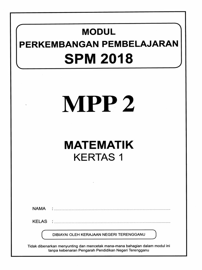 Jawapan Kertas Percubaan Spm Matematik Terengganu 2018